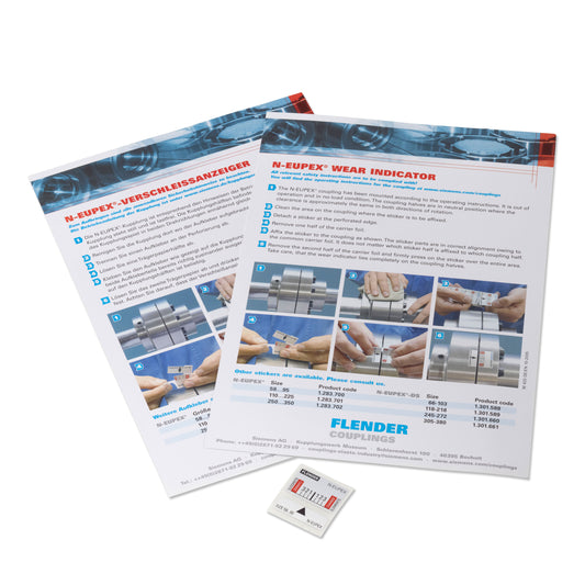 Elastomerpakete zur formschlüssigen Verbindung der N-EUPEX Kupplungsteile sowie Verschleißanzeiger zur Beurteilung des Elastomerpaketzustandes.-